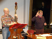 Thomas Rutt am Kontrabass, bekannte und weniger bekannte Texte von Wilhelm Busch vor.